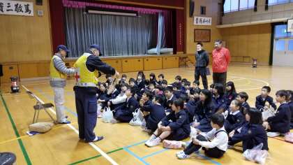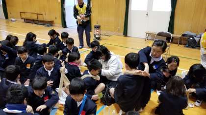 身近なものを使った応急手当の学習です。