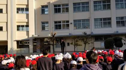 早川先生からは「クラブ活動」について、中西先生からは「今週の目標」についてお話がありました。今週の目標は「寒さに負けず 外で元気よく遊ぼう」です。いっぱい外で遊びましょう。