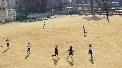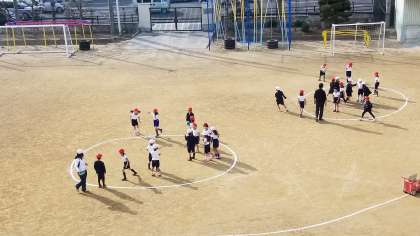 1年1組の体育の様子です。運動場を工夫して使い運動しています。