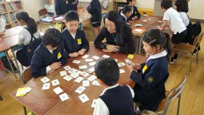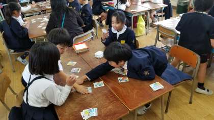 教室ではかるたなどの室内で遊ぶむかしあそびです。