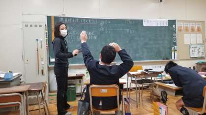 なかよしの授業の様子です。しっかり先生の話を聞いて授業を受けることができています。