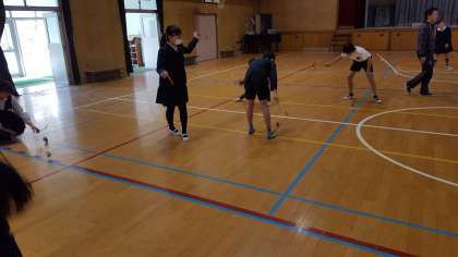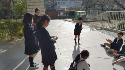 さすが6年生、こまの手のせができる子、ペンイをひもでたたいて長時間回す子などとても上手です。伝承という意味で、むかしあそびをなかよし班でやるのも楽しいかもしれませんね。