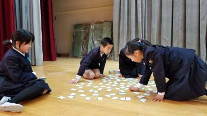 コマまわしやお手玉、百人一首など、なにをするにも笑顔が絶えません。気持ちの良い子どもたちです。
