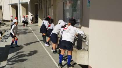 かけあしタイムが終わった後は、しっかりと「手洗い」「うがい」をして教室にもどります。