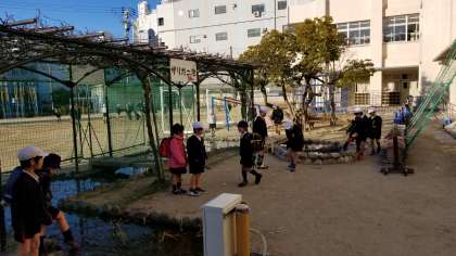 天小ひろばの池やザリガニ池も氷が張ってにぎわっています。