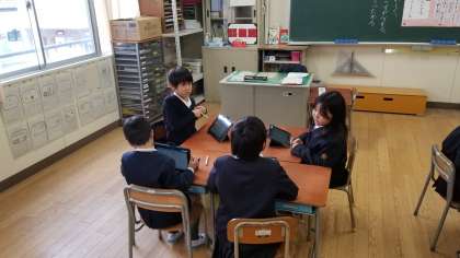 子どもたちの作った詩をグループで鑑賞して意見を出し合っています。