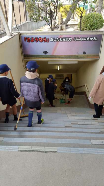 美化委員会の朝の清掃活動で、地下道の出口と階段をきれいに掃除をしました。おかげでみんなが気持ちよく通ることができます。みなさんありがとうございました。