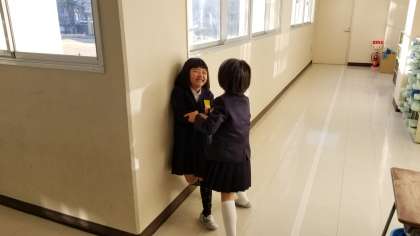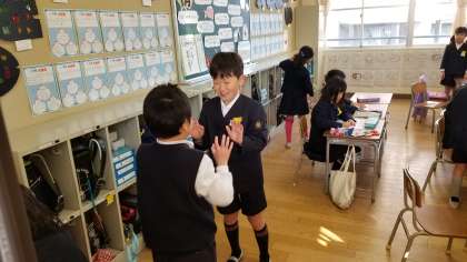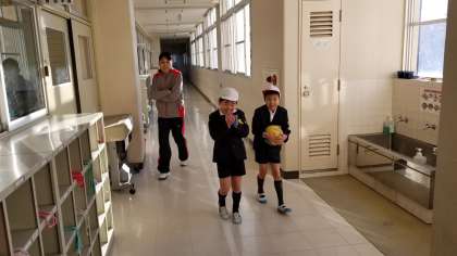 運動場からも子どもたちが戻ってきて、これから授業が始まります。
