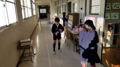低学年の様子です。けん玉をしたり学習準備をしたりいろいろです。
