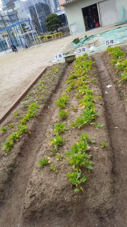 天王寺蕪が、大きく育ってきました。5年生が月曜日に収穫予定です。