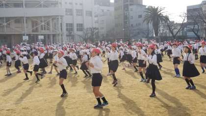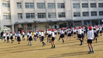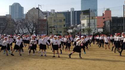 1学期、運動会に向けて練習した「天王寺体操」です。この時期に再度練習して、新学年での運動会で演技できるように取り組んでいます。