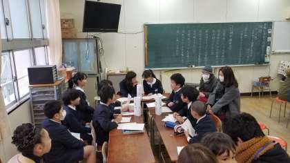 5年生の授業の様子です。1組は国語科で「立場を決めて討論しよう」です。携帯の問題やクラス替えの問題を討論しました。2組は道徳で「1秒の言葉」です。言葉の力について考えました。