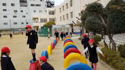 全学年がボール遊びや固定遊具で楽しく遊んでいます。