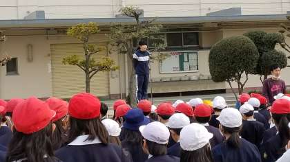 次に、天王寺区コミュニティ協会主催の「書初めコンクール」の表彰を行いました。1年生と5年生の女子児童が表彰されました。