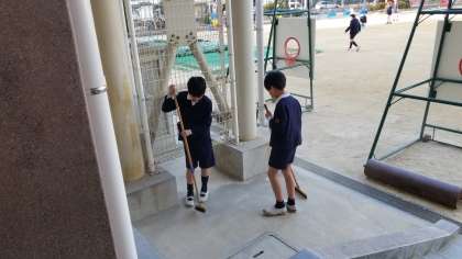 美化委員会の活動の様子です。真面目で丁寧に役割を果たす姿に頭がさがります。