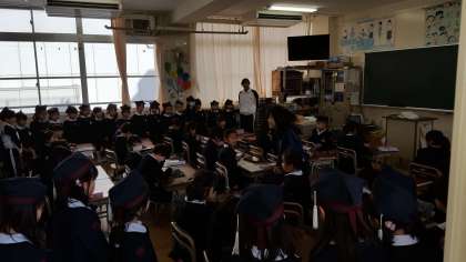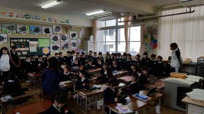 1年生・2年生の音楽の授業では鍵盤ハーモニカの演奏、合唱をを聴きました。