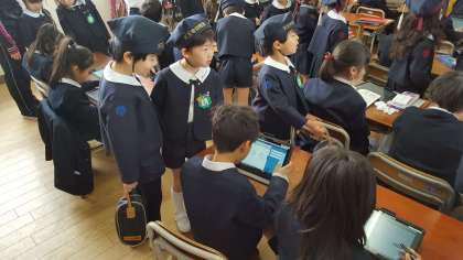 また、タブレット端末を使っているのを興味津々に見ていました。