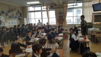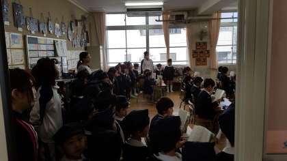 2年2組は、国語の授業でした。2年生が張りのある大きな声で詩を朗読するのを聞いていました。