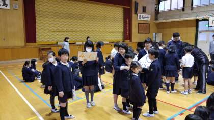 今日の児童集会は2月23日(金)の「卒業生を祝う会」の練習です。今日は在校生の練習ですので、1年生から5年生の集会となりました。5年生がリーダーとなり頑張りました。