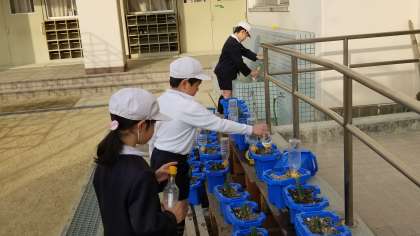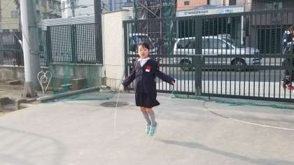 縄跳びを頑張っている児童もいます。育てている水仙に水やりをしている児童もいます。