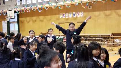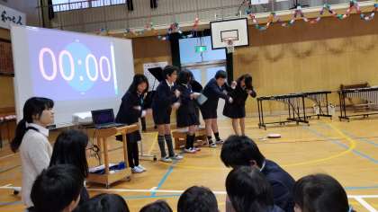 ビンゴゲームです。ビンゴになった班は喜びを体いっぱいで表していました。