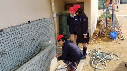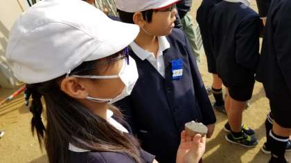 5年生が1時間目、総合の授業でジャガイモを植えました。