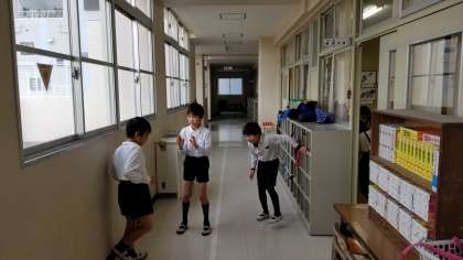 3年生の廊下では児童が楽しそうに遊んでいます。