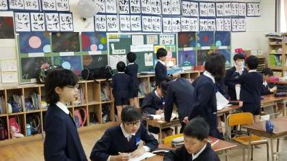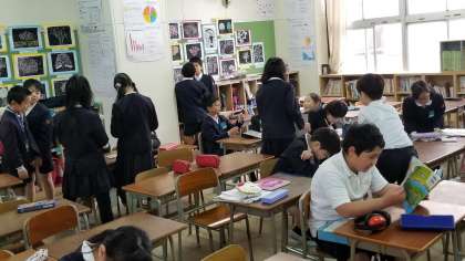 今日は雨で体育朝会がありませんでした。始業までの教室の様子をお伝えします。