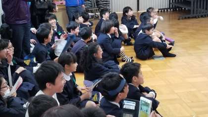 中学校から花山校長先生も参観に来られました。何事にも前向きな天小の6年生を見てもらいました。