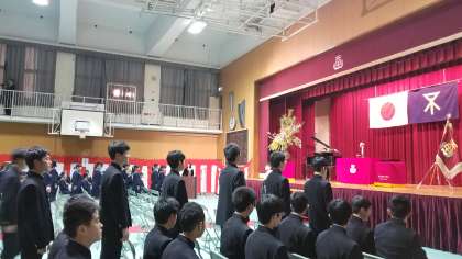 写真上から入場、卒業証書授与、退場の様子です。生徒たちの堂々とした態度、校歌や送辞、答辞なども見事で本当に素晴らしい卒業式でした。