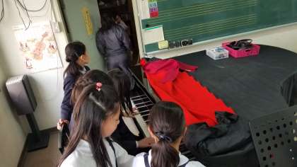 音楽の授業の前に各自で楽器を演奏しています。学期に触れるのはとても良いことだと思います。いろいろな楽器が演奏できるといいですね。