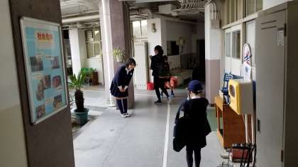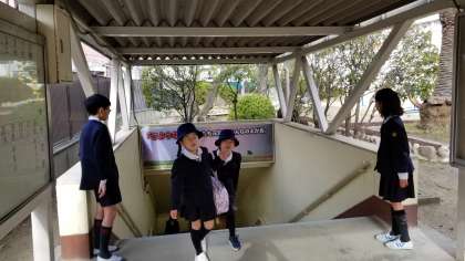 今日も4年生・5年生が6年生のピンチヒッターであいさつ当番をしてくれています。