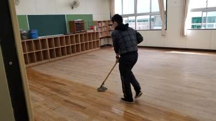 6年生の教室です。卒業した6年生がきれいに掃除をしてくれましたが、新学年を迎えるにあたり、旧6年の先生方が再度掃除をしています。