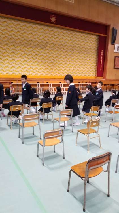 10時、新入生が6年生と手を繋いで入場しました。