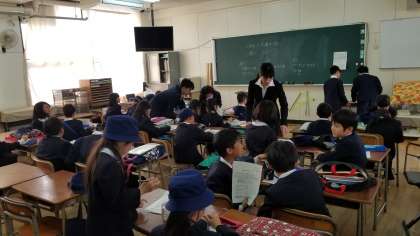 班のメンバーを確認できたら、班毎に各教室で集団登校等の約束や話し合いを行います。