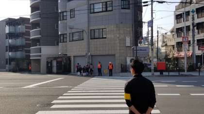 本日は毎月第二火曜日に実施される登校指導の日です。
