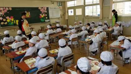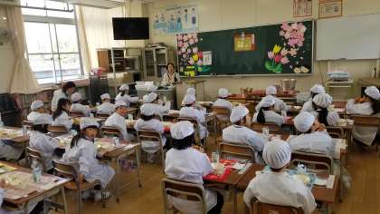 最初の給食とは思えないほど、しっかり準備ができました。また、ほとんど残さず食べることができていました。応援にきている先生方もびっくりしていました。1年生の皆さん、この調子でしっかり給食を食べて、いっぱい遊んでたくましい体を作ってください。