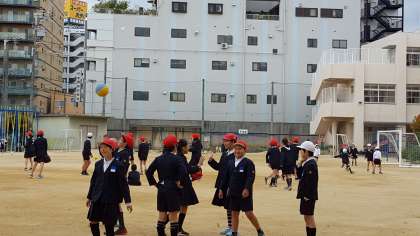 運動場では、それぞれの場所で色々なことをして体を動かしています。
