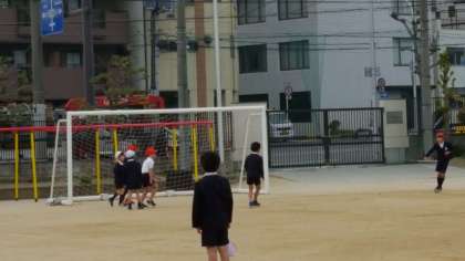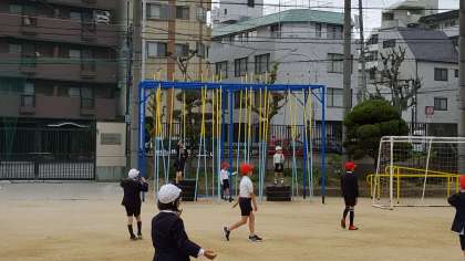 ボールを投げる子、蹴る子、遊具を使う子それぞれ楽しんでいます。