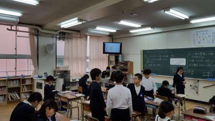 今日の6時間目の各クラスの授業風景です。どの学年にも共通するのが、パソコンとプロジェクターを使っているところです。