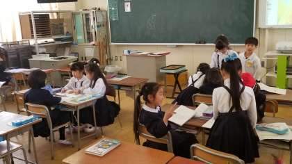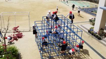 写真は2年生の教室での様子とジャングルジムの様子です。