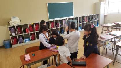 「校長先生、静電気で髪の毛が立つよ」と教えてくれました。