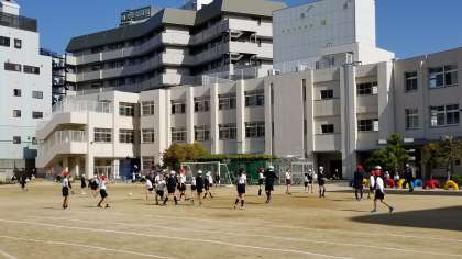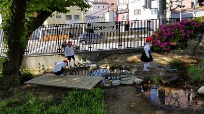 朝の様子です。運動場やビオトープで楽しくすごしています。