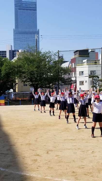 ラジオ体操を行いました。一つひとつの体操をしっかりと演技できるように細かな指導がありました。