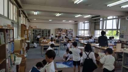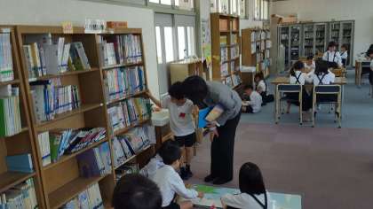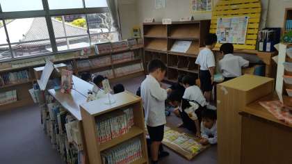 1年生も今日から図書館を利用します。早速1年生に本を探していらっしゃいました。