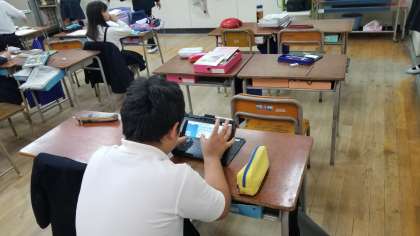 朝学習の準備をしています。