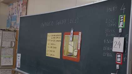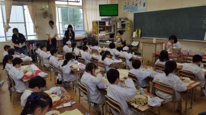 1年生の初参観授業は給食参観です。いつもと違う雰囲気の中で給食を食べました。