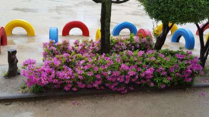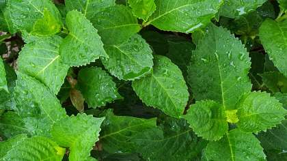 皐月は雨にぬれて映えています。アジサイにはもうつぼみが・・・。もうしばらくすると、雨の季節の訪れることを予感させる朝の天小です。