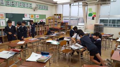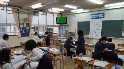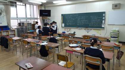 雨で運動場が使えないときの各教室での休み時間の様子です。