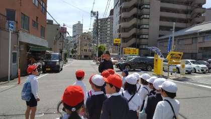 班にわかれて自分たちの校区を探検しました。